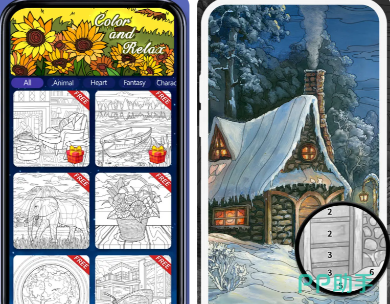 这个游戏和前几年火极一时的“秘密花园”涂色非常相似,玩家需要通过画面上标记的每个色块的数字,找到对应的颜色完成涂色,最终完成一幅幅精致漂亮的涂画,即使对色彩搭配不熟悉也可以画出很美丽的画面,如果给小朋友玩,还能启发小朋友对绘画线条、布局构图、色彩搭配等方面的能力,很锻炼小朋友的绘画能力。