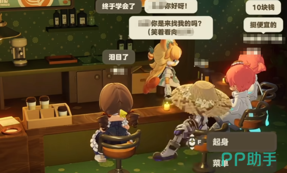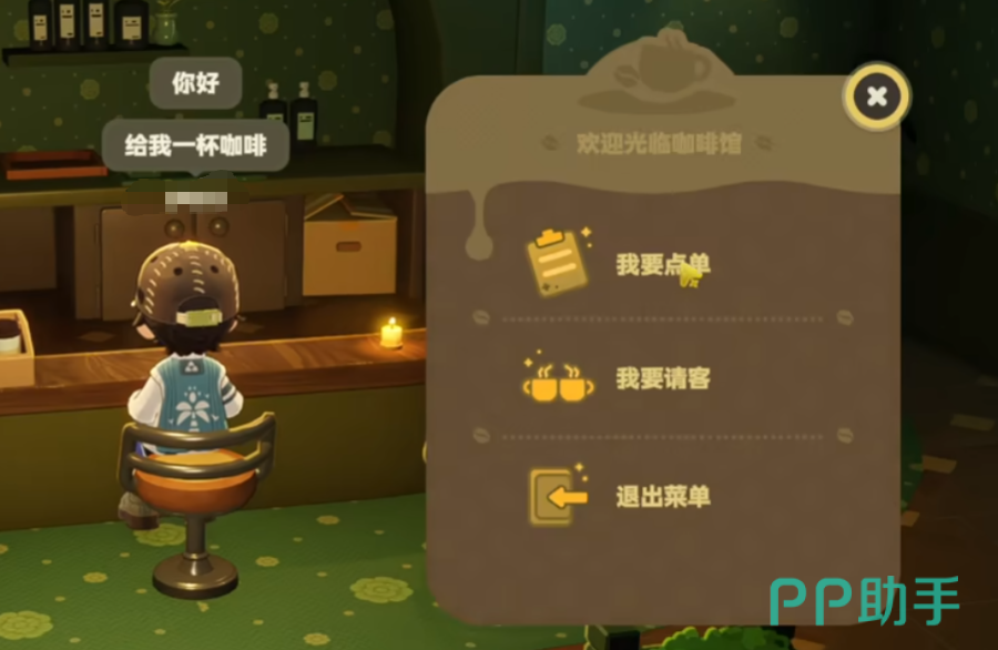 系统提供快捷传送功能,点击指引即可直达咖啡店门口。此时玩家可选择加入开放式的多人共享频道,也可邀请好友创建专属私密房间。完成选择后便能进入店内环境。内部设有多个座位供玩家自由挑选,同时具备点单机制——在游戏过程中感到疲惫时,不妨来一杯香醇的卡布奇诺放松一下。此外,还支持“我要请客”功能,让玩家能为同伴赠送饮品,增强互动乐趣。