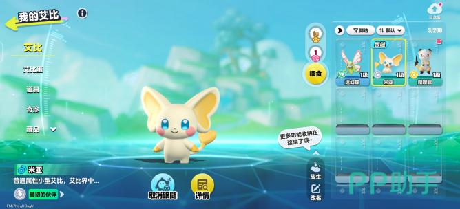 每位艾比不仅外形独特,还具备专属战斗属性。玩家可在角色详情页查看其技能配置和数值表现,合理搭配可在挑战中发挥优势。此外,参与新手引导任务后,可与田园中的阿公互动并开启种植系统。通过培育作物积累资源,同时逐步解锁新的艾比成员,例如拥有白黄色外观和尖耳特征的米亚,它将成为你探索旅程中的忠实同伴。
