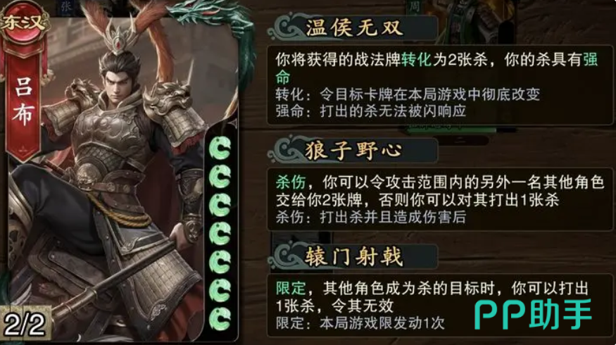 最后要提到的是吕布,这位武将在多个城池战中均有出色表现,但实际发挥依赖于关键装备的获取。若能获得诸葛连弩或专属武器方天画戟,其实力将跃升至顶级层次。“无双”技能允许其通过战法牌转换为两张【杀】,且这些【杀】无法被【闪】抵消;“狼子野心”则规定:每次【杀】造成伤害后,攻击范围内的一名角色需交出两张手牌给吕布,进一步强化其输出循环,形成滚雪球式优势。