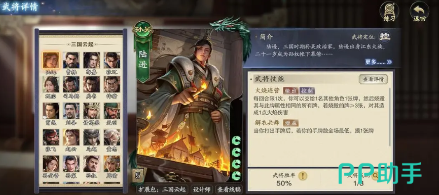 陆逊同样是联军中的高价值人选,尤其在手牌中含有较多【闪】与【桃】的情况下,整体战斗力显著提升。在荆州战场,他也具备担当城主的潜力。“火烧连营”可在每回合对其他角色展示一张牌,若花色相同则继续传递,一旦烧毁超过3张牌,还能追加1点额外伤害。另一技能则规定:若其在出牌后手牌数为全场最少,则可额外摸一张牌,这使得他在资源管理上具备极强的适应性。