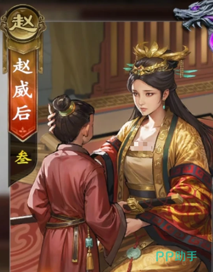 第三位登场的是防御与续航兼备的赵威后。她的一技能触发时机非常关键:当她即将因“杀”受到伤害时,可指定一名队友从特定区域获取一张卡牌,随后该队友返还一张手牌给她,同时她自身恢复1点体力。这一机制不仅强化了她的生存能力,也在关键时刻为队友提供支援。二技能则带有一定博弈性质:可让某位队友跳过准备阶段,但在其失去最后一张手牌或手牌被清空时会触发一次卜卦判定,若结果不利则队友将损失1点体力。因此该技能需根据局势谨慎释放,适合在己方状态良好时用于战术调度。