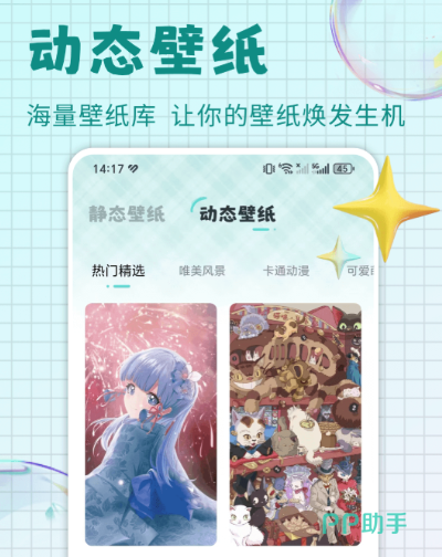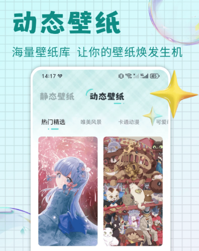 以原创设计为核心特色,平台汇聚众多独立设计师,提供大量独家动态壁纸内容,更新频率高,风格多样。应用运行流畅,内存占用低,安全性强。更特别的是支持用户自主创作,可将本地视频或收藏的精彩片段转化为专属动态壁纸。