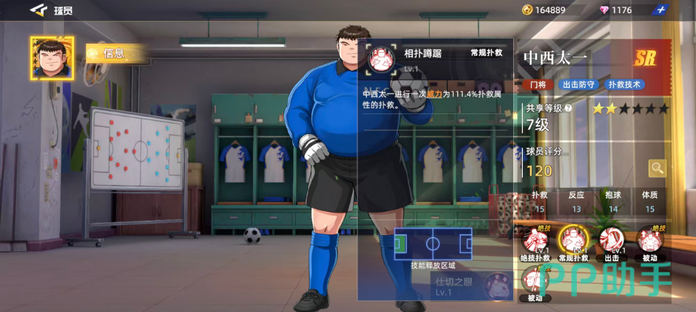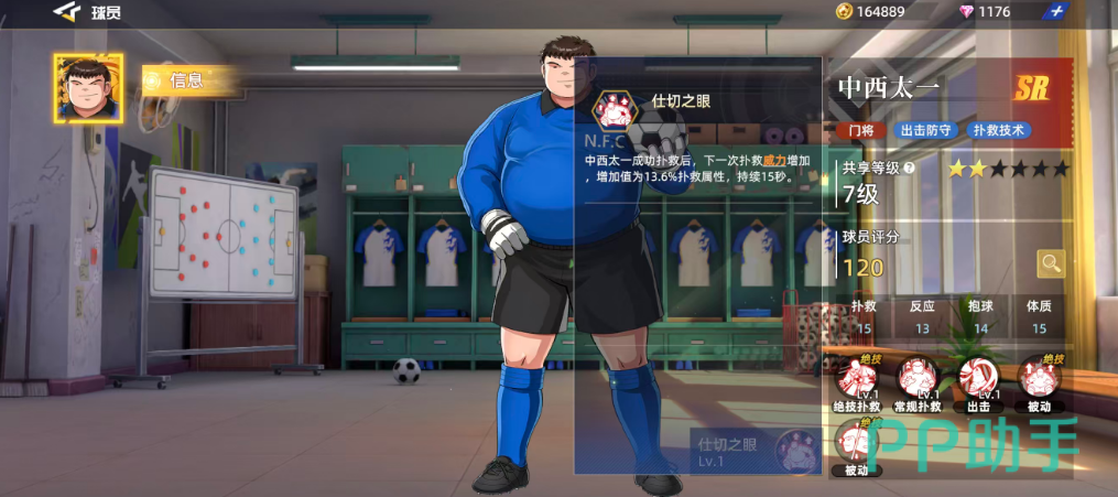 被动力士斗志也是他的绝技,此时给中西太一带来的也是在扑救属性上面的增强效果,毕竟他就靠这方面的能力存活在球场上,但是这个百分比带来的提升不多只有2.1%,但是如果此时中西太一利用这样的加成来发动扑救技能的时候,对手正好是射门爆发期间,那么中西太一在本次的扑救当中会得到威力增加的效果,这里增加值为21.3%的扑救属性,所以在对手正好进入这个射门爆发的时候大家一定要抓住时机把这个技能用出来。