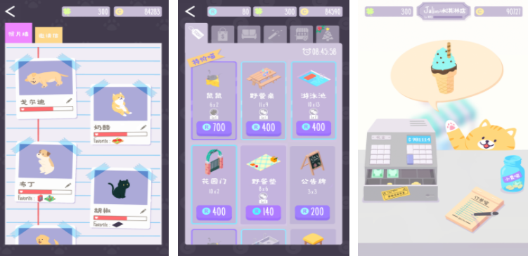 很多玩家对于休闲类型的游戏都很感兴趣,通过猫猫狗狗冰淇淋,每个玩家都能在卡通世界经营一家小店,在这里的顾客都是可爱的小猫小狗,每当店铺开张之后,他们都会来购买冰淇淋,玩家需要按照这些成员的要求,完成对应的口味和配料搭配,通过挑战,玩家还可以解锁不同的动物,并且用这些收益装饰冰淇淋店。