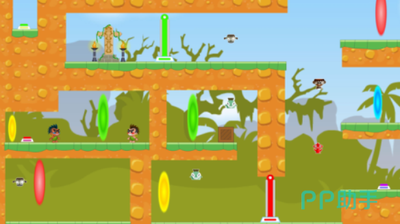 双人原始人兄弟以双人合作闯关为核心,展现远古冒险的趣味与挑战,通过差异化技能设计与丰富的场景机关强化协作需求,游戏场景丰富多样且充满细节,从茂密的热带丛林到幽暗的神秘洞穴,从火山边缘的灼热地带到冰川覆盖的寒冷区域,每处环境都布满独特的陷阱与敌人。
