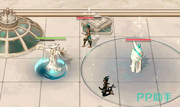 玛格丽塔的初始特性在战斗开始时触发,若其身前地格存在队友,则该队友进入捍卫者状态;若前方无单位,则由玛格丽塔自身获得此状态。处于捍卫者状态的角色会携带捍卫印记,并在持续期间每隔一段时间清除一次和平雕塑上的破绽印记。