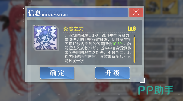第二个技能“炎魔之力”在装备专武后得到强化,可提升自身10%炮击与命中属性,同时降低受到的点燃伤害。当敌方单位进入其防御射程时,自动触发减伤机制并增强防空性能。最关键的是,她在遭遇致命伤害时不会立即沉没,而是进入10秒无敌状态,期间规避所有伤害并恢复20%最大耐久。配合兵装系统提供的“血量低于70%时每5秒回复生命”效果,使得她在高压环境下具备极强的生存能力,特别适合部署在13图及15图等高威胁作战区域,有效应对跨射打击。