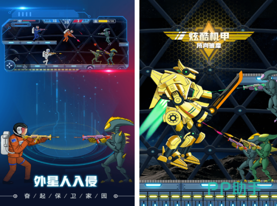 当你进入了这款,以超级机甲战士展开战斗的游戏当中,既可给带给大家全新的体验,除此之外,每个机甲的外形,也是非常非常炫酷的,将敌方的基地摧毁以后,你就能成为真正的超级机甲战士。既可选择持枪战斗,同时也能拿着各种各样的武器,当面对外星人入侵的时候,要为了保卫家园,要奋起反抗,有多款炫酷的机甲形象。