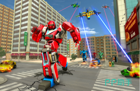 既可通过控制着机器人在城市当中展开大战,它也是支持变形的,无论是想要成为体型特别庞大,各种颜色炫酷的机器人,或者是各种汽车,都可通过体验的过程当中,自由变换形态的方式,在这里面加入到与其他对手的较量中。甚至还有无人机机器人,他们也将发挥战机所具备的射击能力,通过与邪恶机器人展开战斗的方式,保卫城市。
