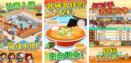 由开罗游戏公司所创作的这款模拟经营类手游,作为拉面店老板的你,通过装修店面以及潜心研发新菜品的方式吸引更多顾客,其中有各种美味的食物类型,比如有爽口的蔬菜或者是美味的糖心蛋等等,为顾客制作美食时,必须要了解顾客的口味需求,还会定期推送出各种美食比赛,需要在大赛中和对手展开激战。