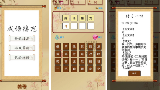 成语作为我国传统文化,拥有着无比悠久的历史,成语接龙更是老少皆宜,成为我国文字文化的缩影,拥有非常别致的多样化规则,多种特色关卡等待你来完成,目前已经升级到上百关,每次通过关卡之后,都会给予相应的解释,以及具体的出处。