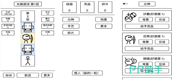 女娲捏人就是款模拟女娲娘娘捏人的文字互动类游戏,玩家的任务很简单就是不断捏小人儿并塑造各种造型,也可以自定义这些小人的能力属性,比如让其成为领导者、武将或者普通人,模拟神明自由捏人的既视感更受大家喜欢,文字互动的捏人、捏脸玩法互动性也比较不错,辨识度很高的捏脸画面更是点睛之笔。