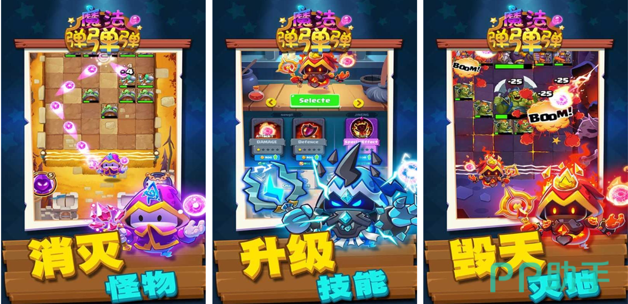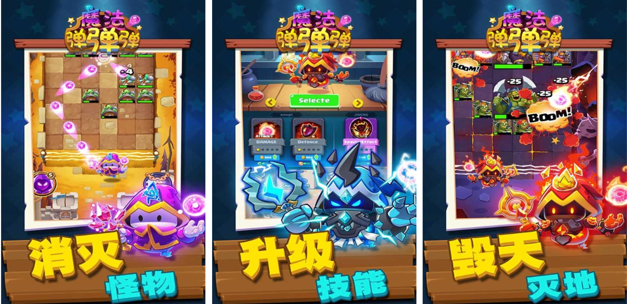 弹射类游戏爱好者应该会喜欢在魔法世界弹射战斗,本作是款可自由解锁技能武器的魔法游戏,弹射类的主题任务会带来激情四射的互动快感,游戏基础的物理反馈很不错与弹射玩法交相呼应,亦可提升技能的等级带来更为炸裂的特效,可使用毁天灭地的终极大招对敌人进行清屏,战斗特效完美再结合简单点触操作更受欢迎,魔法+弹射的主题玩法也很有创意。