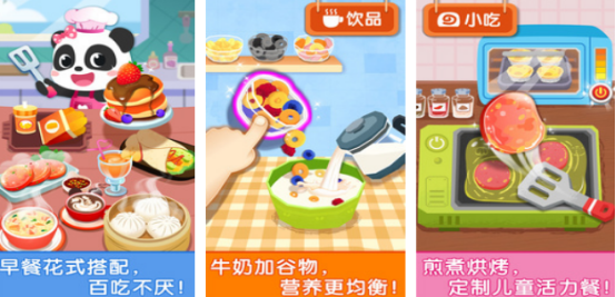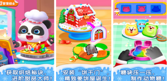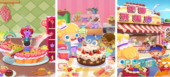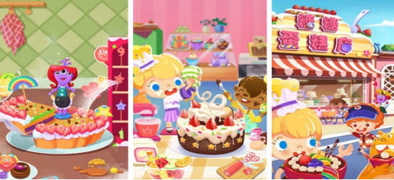 制作甜品为题材,同样也由宝宝巴士所打造,化身成为甜品师,学习制作冰淇淋蛋糕或者鲜奶蛋糕,有几十种水果原材料,含有各类型装饰品,可以自由混搭制作冰淇淋、冰沙等不同的甜品。有较为出色的动手能力,渐进式难度,适合不同的年龄段。