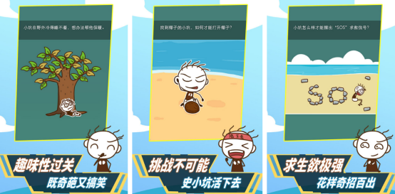 烧脑的解谜为主要核心,需要让大家通过解谜的方式拯救其中的史小坑,因为开局之后就会被困在荒岛上,也会遇到很多高难度的挑战,或者是搞笑又倒霉的事情。当没有食物资源,或者遭遇到野兽的疯狂攻击时,就需通过问答或者是操作的方式破解谜题。