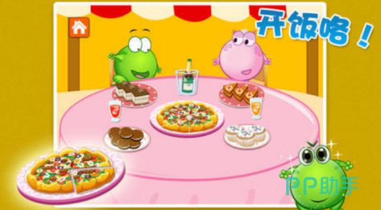 特别可爱的绿豆蛙以及粉红蛙喜欢吃披萨,因此在披萨店当中用心享受这种美食,但是也特别喜欢自己动手,其中有各种美味的食物类型应有尽有,甚至还可自行diy设计各种图案精美的桌布,任由大家随意挑选。大家利用手指滑动屏幕的方式,就能够将所有的美食放在桌子上,让其中的两种角色享受美食。