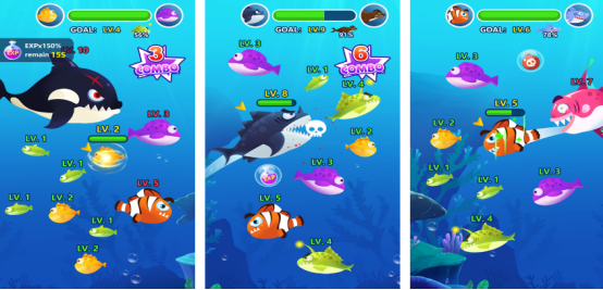 湛蓝的深海中有各种不同类型的鱼类,起初自己只是一条不起眼的小鱼而已,在如此残酷的自然生存法则攻击之下,需合理走位,吞吃比自己小的鱼类之后就会让自己变得越来越大,也需要在进化时秉持着大鱼吃小鱼的自然理念,在逐渐进化之后,就能成为海底世界里最高等级的鲸鱼,称霸整个海洋。