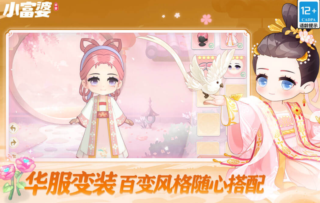 本作也是展现出古代美术风格的女性向佛系休闲APP,女生玩家可感受穿越到古代化身富婆的既视感,有钱的古代人生会让女生更加沉沦在古代世界,花哨的服装随意购买可为富婆塑造更精美造型,还设有换装PK元素跟随心化妆的理念,剧情刻画极为精彩颇像一部穿越类的短剧,还设定了很多搞笑的互动情节让女孩子回味无穷。