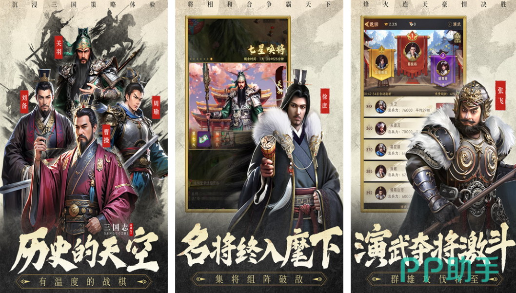 三国志战棋天下采用的战棋模式诠释三国游戏的策略性。游戏不仅注重策略,同时发展融入了战争、角色等多种独特玩法。每个武将都高度还原三国人物特性,玩家可以招募并且升级她们的实力,自带的技能系统还能满足玩家自由搭配技能的想法。游戏主要分为沙场和政殿两大部分,玩家主要在这里进行军事行动和战略布局来提升实力。