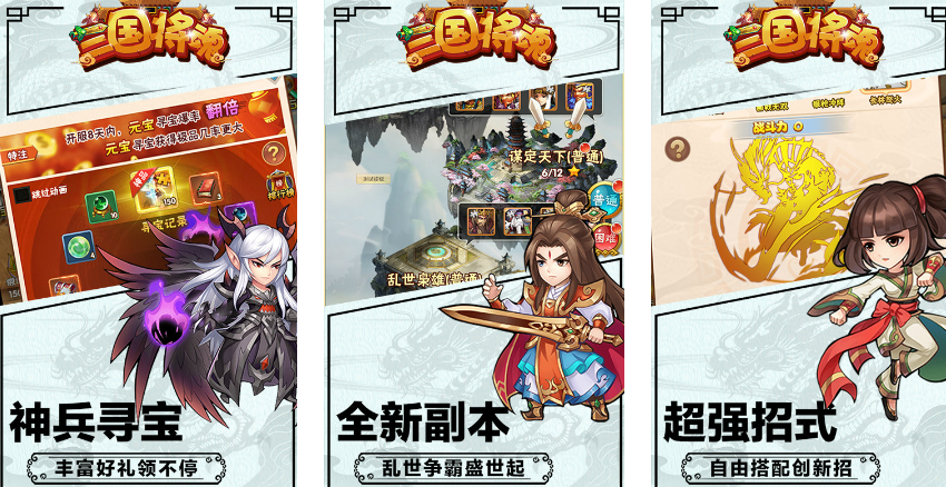 三国将魂是一款Q版策略类型的卡牌手游,游戏中采用有趣的画风还原了三国最经典的人物形象,同时还配置了策略和养成一体化的游戏模式,多种福利活动可以使玩家很快体会到三国霸主的快感,开局就送大量装备和资源,可以快速成就自己的最强兵团。独特的武将系统和多样化的卡牌阵容搭配极大地提升了玩家的游戏体验感。