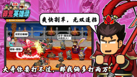 它是根据pc游戏,特别受欢迎的热血格斗风格所打造的手游,还以三国时期的英雄为主,当大家进入了蛮荒英雄的世界以后,为了顺利的展开闯关以及冒险。必须要使用每个武将所具备的花式连招技能,享受无限解压的快乐。除此之外,这也是完全免费畅玩的,即使是挂机,也能够获得超多的奖励,享受爽快割草。
