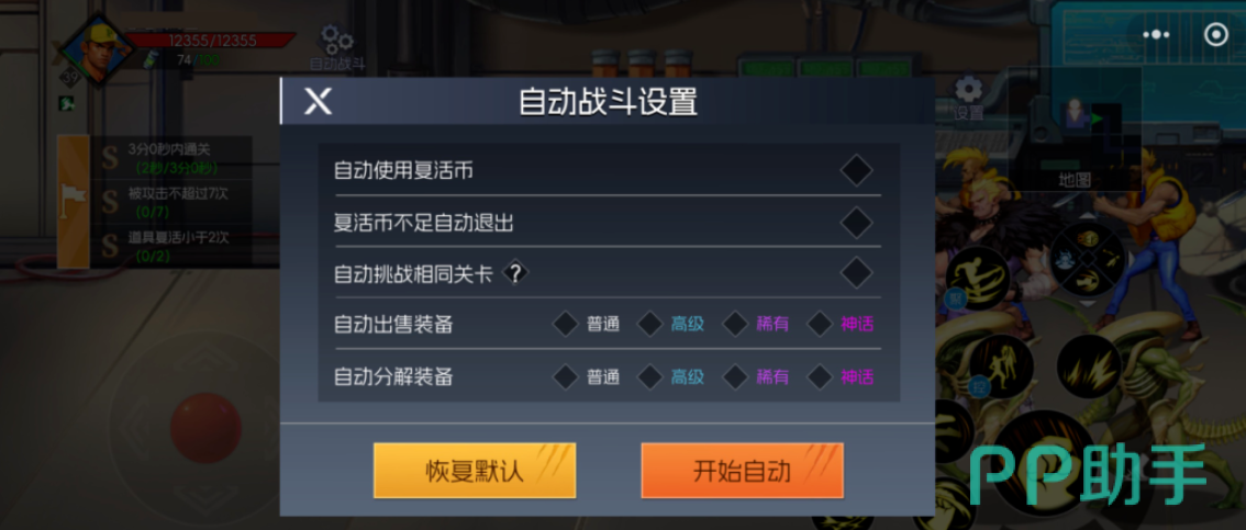 要使用自动战斗功能,首先需要激活“超级月卡”,获得为期30天的自动战斗权限。进入战斗场景后,点击界面左上角的齿轮状图标,即可打开自动战斗设置面板。在此界面中,玩家可根据需求开启多项自动化选项。例如,勾选“自动使用复活币”后,角色死亡时系统将自动消耗复活币继续挑战,直至通关或复活道具耗尽。