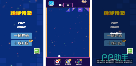 在这里,玩家将扮演一名弹球高手,操控专属球体展开一场场富有挑战性的弹射冒险。界面上方显示剩余球数,需利用有限次数击碎尽可能多的高分方块以获取更高积分。游戏提供多种开局选择,包括“一球开始”或“十球开始”两种模式,满足不同难度偏好,考验玩家的空间判断与路径规划能力。