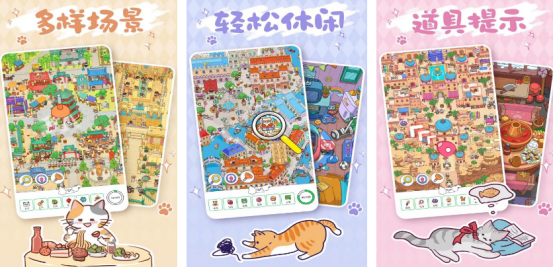 设定在一个充满奇趣的猫咪宇宙中,看似普通的物件在这里却成了珍贵宝藏。每个任务都会列出需要定位的物品清单,玩家需逐一搜寻。使用放大镜工具可辅助查看细节,完成全部目标后即可解锁下一关。游戏地图多样,包含多个隐藏剧情等待发掘。