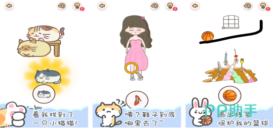 这款游戏由大量精心设计的关卡构成,融合了多种富有创意的谜题类型。每一关都有明确目标,例如画面中可能出现多只外形相似但细节不同的猫咪,下方提示“我找到了一只小猫猫”,需要玩家结合观察与逻辑推理才能找出正确答案。遇到困难时,系统还提供提示功能,帮助玩家顺利推进进度。
