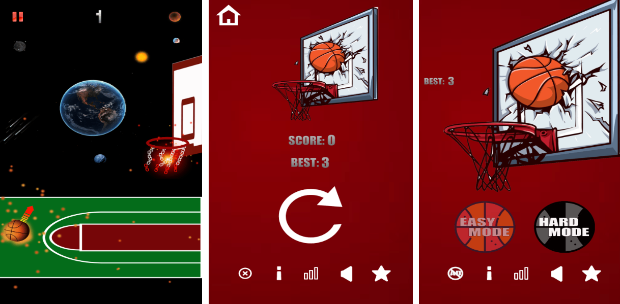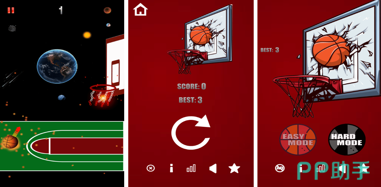 本作就是款能模拟锻炼玩家三分投篮技术的单机小游戏,有着恢弘宇宙的背景跟轻量级小型的内存,玩家要尝试弹射篮球稳稳的进入篮筐中,考验准头和蓄力方式的投篮操作极为硬核,画面营造卡通与宇宙背景形成了强烈割裂感,完美复刻真实世界三分球投篮的游戏机制也令大家满意,想练习球技的小伙伴试试这款三分投篮手游吧。