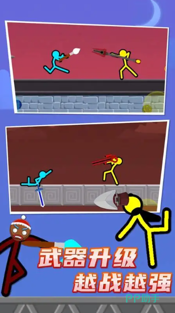 这款游戏的核心是激烈的对战体验,风格偏向热血动感,画面中的战斗特效简洁却有冲击力,火柴人在游戏中可以展开多方位的激战,场景设计能支撑起高强度的对战需求,不管是单人对战还是多人混战,都能感受到紧张刺激的氛围,操作响应迅速,能让玩家精准掌控火柴人的动作,在激战中享受酣畅淋漓的对抗乐趣。