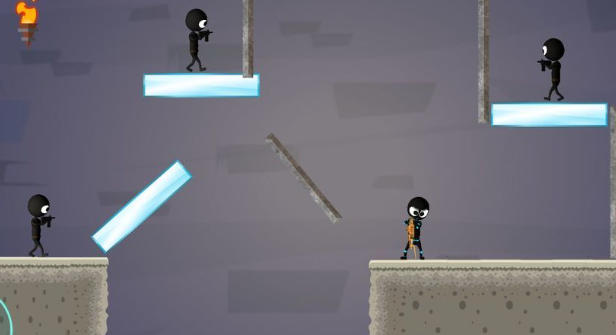 游戏将射击元素与火柴人形象结合,风格偏向休闲射击,没有过于复杂的射击系统,场景设计多样,不同的关卡有不同的射击目标和环境,操作简单易上手,瞄准射击的过程流畅直观,火柴人作为射击英雄,在游戏中展现出灵活的移动和精准的射击能力,玩家能在轻松的射击氛围中,体验击中目标的成就感。