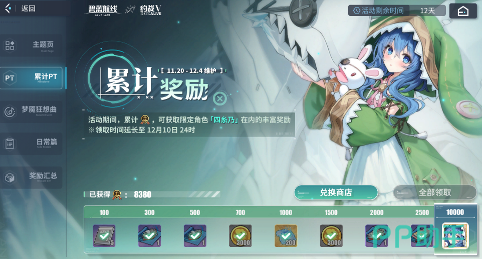 获取途径各有不同:十香、折枝与琴里仅能通过限时建造系统抽取获得;四糸乃则需累计活动PT点数达到指定阈值后兑换;狂三初始以NPC身份登场,需通过出征收集音符资源,集满1000点即可正式加入队伍;八舞既可通过建造获取,也可在第六战区通关后通过打捞或PT兑换方式获得。