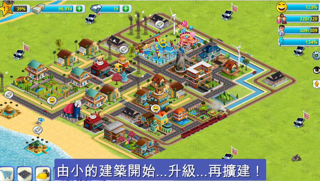 游戏的自由度简直太高了,玩家可以根据自己的喜欢进行设计,其中包含了现代类摩天大楼、古典的城堡等等,每一处细节都是经过细心去琢磨的,能够将艺术和功能相进行结合。《我的城市童话世界》在收集资源的过程中可以逐渐的去解锁城市的魅力值。想要吸引更多的顾客吗?就要打造出更加繁荣的童话世界。