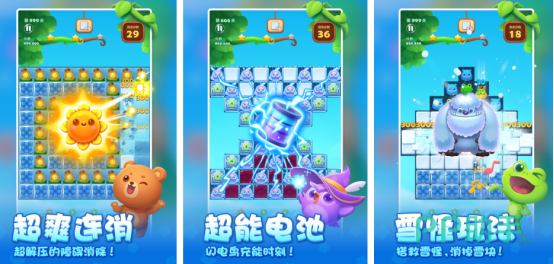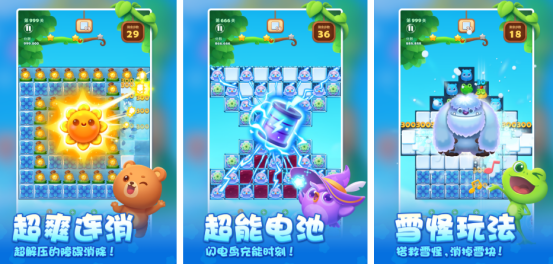 以消除玩法为核心,目前已经更新到上万个关卡,而依旧在持续更新当中,有多样化过关模式,比如分数过关,指定消除、金豆荚收集,满足更多玩家的种种需求,游戏当中有很多圆润又可爱的动物形象,有非常呆萌的小狐狸,还有可爱的棕熊,每次在消除时都会触发相应的清脆音效,享受充满愉悦的消除效果,当前会不定期推送特色道具,最具有特色的就是魔力鸟。