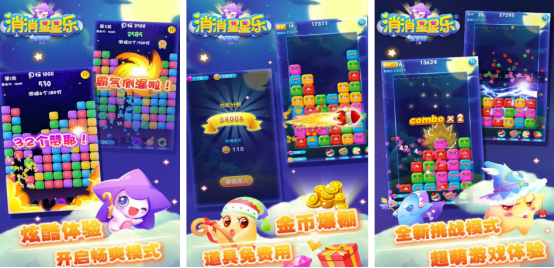 消消乐属于非常经典的三消作品,通过连接相同颜色星星就能够轻松消除,当达到目标分数之后,即可以成功通关,游戏提供非常别致的特殊道具,帮助小伙伴们在紧要关头消除星星,有简洁的画面以及独特的音乐配音,提供多样化数百种关卡,任意探索。有超级丰富的关卡设计,目前已经推送到几百关,随着时间推移,玩家需要巧妙规划消除步骤。