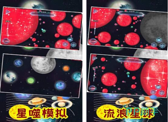 当大家进入了这款,拥有着超多流浪星球的世界以后,既能看到超多的小星球,也可以看到大型的星球,通过进入游戏环境当中。不断的吞噬比自己小的星球,还要躲避比自己大的星球,最终不断的吞噬进化以后,就能完成宇宙的吞噬,成为最大的星球。最初的时候只是一颗非常小的星球,不断完成目标以后,就可让大家很有成就感,要有一定的策略以及动作能力。
