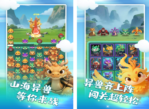 有着山海经当中各种各样的神兽,通过群战异兽的方式,享受抓异兽所带来的快乐,同时也可对各种颜色的异兽通过移动的方式,达到三个或更多数量完全一样的以后,感受消消乐不停的游戏欢乐。没有复杂的任务以及日常,只是通过纯粹的玩法,以及合理的规划每一步,通过打造厉害的特效以后,对异兽进行打击,有绝对公平的成长体系。