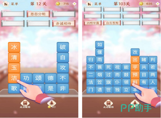 涵盖超多关卡,以成语消除为主要的特色,你需要在体验的过程当中,根据显示出的文字,点击能组成成语的以后来组成大家比较熟悉,以古代的成语为主要内容的。虽然在没有消除之前,所有的文字都是以蓝色的方块为主,不过在成功的组成成语以后,就会显示出以橙色的方块为主的文字,支持了解成语的解释,增长这方面的知识。