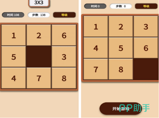 以数字华容道这种玩法为主,通过将方块利用空格不断移动,使数字的排列顺序,保持正确的以后,就能完成挑战。如果你想要利用最少的步数,或者是最短的时间挑战成功的话,可以在3×3的这样的宫格里,仔细的观察不同数字的排列顺序,如果能一次到位排列好的情况下,自然是非常厉害的,在闲暇之余,也可以通过这样的游戏开发智力。