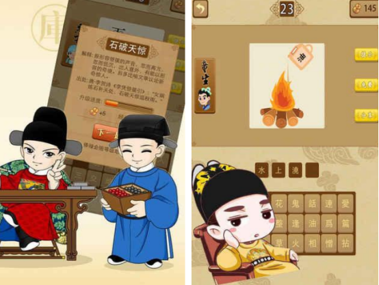 由于古代的成语都是以真实发生的事情为主,所以也能通过这样的内容,应用在各种环境中,这款以看图猜成语为主要玩法的手游,你可以看到每个图片都是比较生动的,在填写的时候并不需要你绞尽脑汁,而是可以观察给出的很多文字提示,找到符合要求的答案,就可以获得相应的奖励。还有与成语有关的解释。