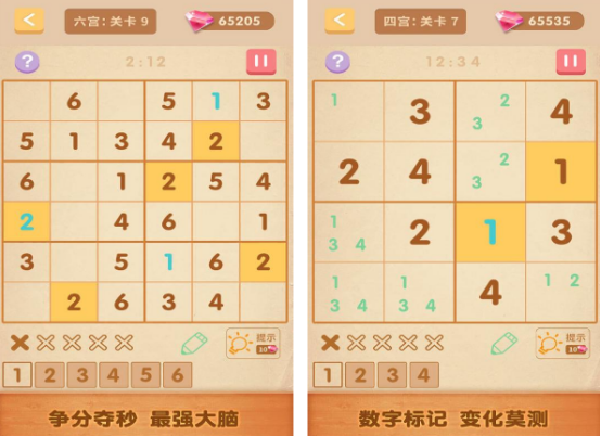 以简单的数独玩法为主,无论是小孩或者是年龄大的老人等,这都是考验大脑的,在玩法模式上,不仅有常见的六宫格甚至是九宫格,还提供了更为简单的四宫格。对于初始玩家来说,就可以从四宫格这样的难度进行挑战,让自己的大脑运转起来,通过不断挑战不同的关卡难度以后,避免智力衰退,每天都可以玩几关。