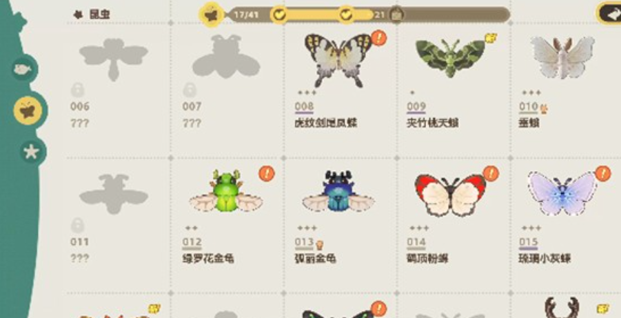 星布谷地捕虫方法已经分享给大家,其实大家在成功的捕捉蝴蝶之后,背包当中就会增加蝴蝶对应的昆虫素材,并且还能够解锁昆虫图鉴。玩家此时此刻就会获得对应的信息,其实玩家在选择捕捉蝴蝶的时候,一旦出现失败的情况,玩家也需要找到失败的原因。
