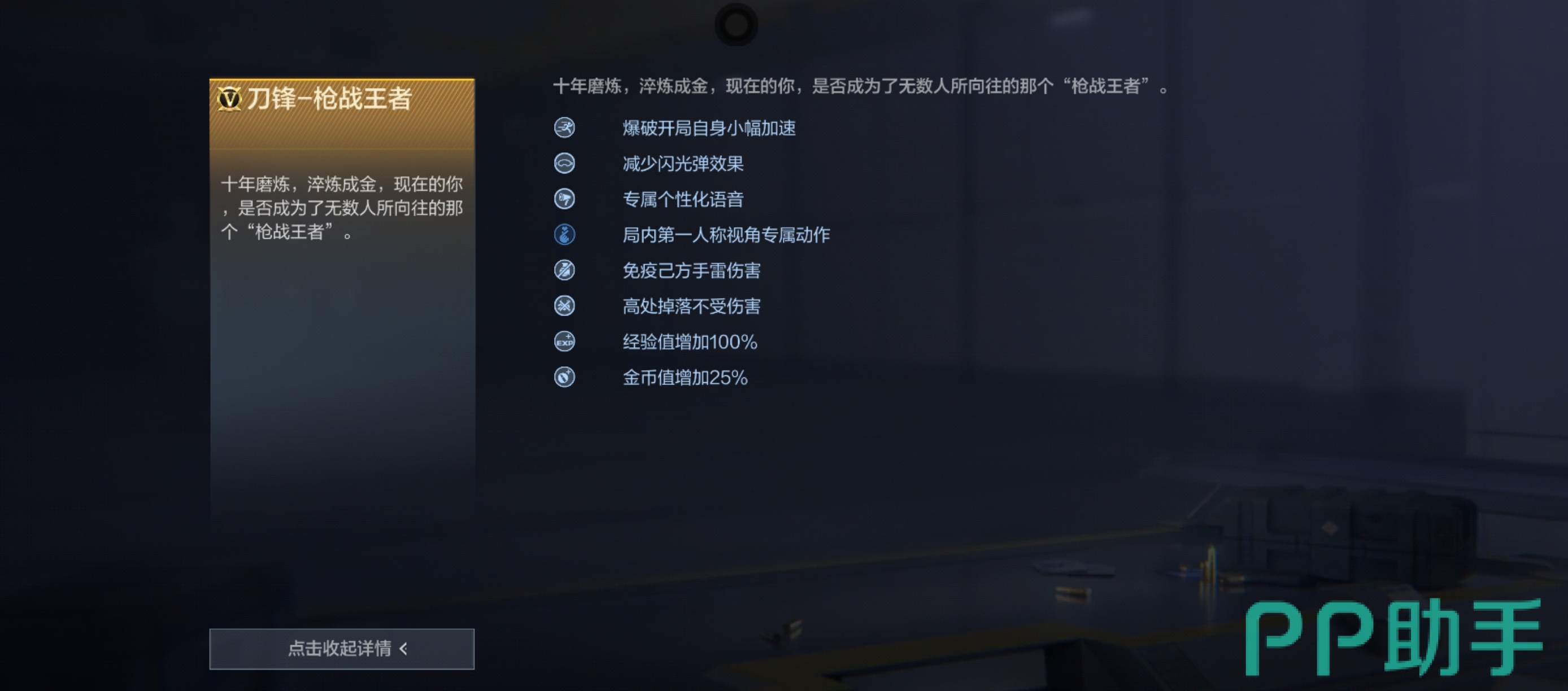 此武器是cf手游十周年特别推出的限定内容之一,旨在提升玩家的游戏归属感与参与感。在爆破模式开局阶段,使用刀锋枪战王者可获得轻微移动加速效果,并降低闪光弹的干扰时间。此外,武器配备专属语音包,在第一人称视角下拥有独特动作展示。携带该武器还能提高局内金币与经验获取效率,且从高处坠落时不承受跌落伤害。