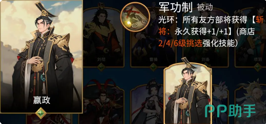如果是想要战力效果更强的统帅型角色,这里可以为大家所用的就是嬴政,嬴政在目前游戏当中可以带来的战力数值非常高,而且可以根据他的能力给目前所有的步枪带来战将类型的效果,比如说芈月就经常跟嬴政搭配在一起,他们俩放在一起的话,触发的斩将次数非常多,适合玩秦阵营,在其中选择了这个阵营之后可以为他带来不将血量的优势,将其中武将换成对面的武将之后,还能提锁他自身的锁血能力,后期达到6本的时候,还可以带出更多的血量提升效果,所以走生存流的话,嬴政是非常适合的。