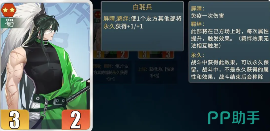那么接下来为大家推荐的是白毦兵这个角色,这个角色放在前期使用的话,也是过渡效果比较实用的,自身可以带来足够的屏障进行防御效果,在攻击频率上面,两次连发的攻击可以带来统帅技能,如果再有属性加上的时候,他其实算做初期非常有潜力的一个武将卡牌,触发了自身羁绊能力的时候还可以过度使用,而且获取难度不高,所以使用起来效果非常出色。