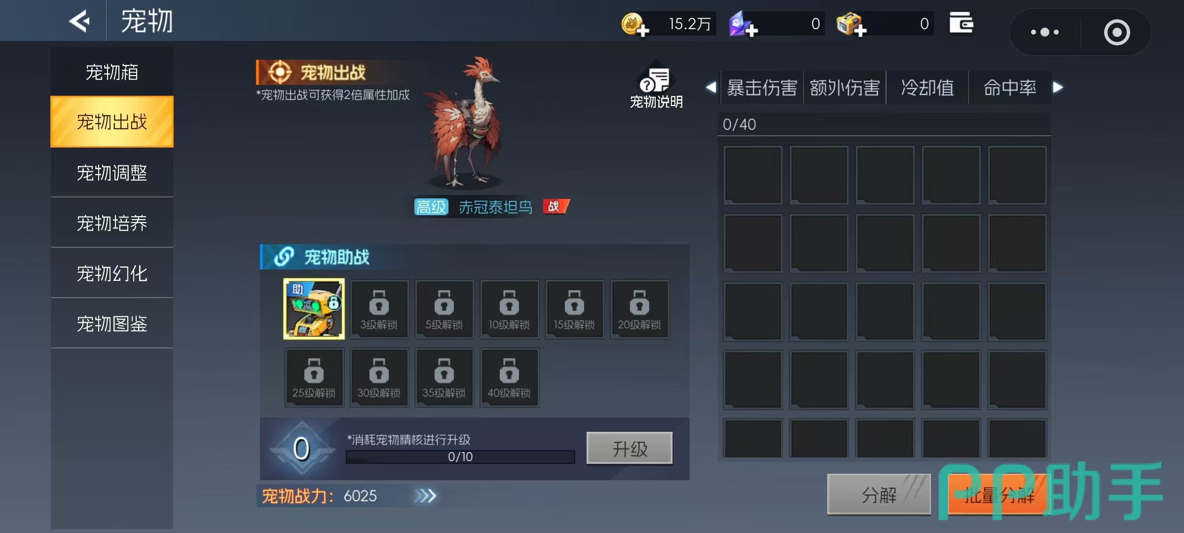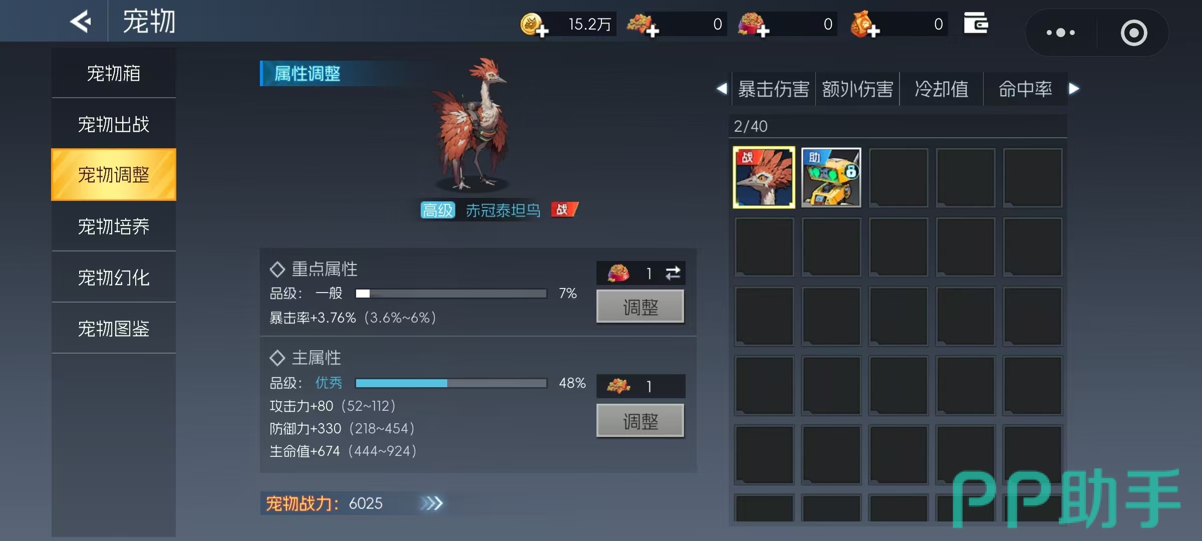 若对现有宠物的属性配置不满意,可进入“宠物调整”功能界面进行优化。通过调整,玩家可以根据自身职业需求定制最合适的属性组合。宠物主要分为几类:提升暴击率、增强暴击伤害、增加额外伤害、减少技能冷却时间以及提高命中率。对于依赖技能连发的职业,推荐选择降低冷却值的宠物;而对于攻击易被闪避的角色,则应优先考虑提升命中率的类型。总体而言,暴击类属性仍是大多数职业性价比最高的选择。例如钢甲巨蝎、钢牙剑齿虎这类宠物,因其出色的暴击与暴伤加成,成为众多玩家的首选。