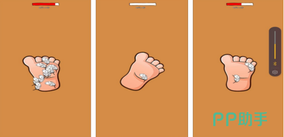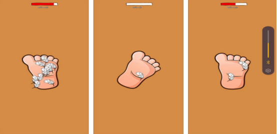 还原现实中的挠脚心游戏,屏幕上会显示一只脚,玩家通过触摸进行挠痒操作。随着羽毛划动,角色会发出大笑声音,脚部也会剧烈晃动,视觉和听觉双重搞笑效果拉满。关卡难度递增,羽毛数量逐渐增多,挑战性也随之提升。