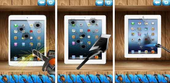 主打恶作剧体验,模拟手机屏幕破碎的效果。玩家可以从斧头、螺丝刀等多种工具中选择,点击屏幕即可触发碎裂动画。画面逼真,伴随清脆的玻璃破裂音效,带来强烈的沉浸感。所有工具排列在屏幕底部,可随时切换使用,满足用户的搞怪心理。